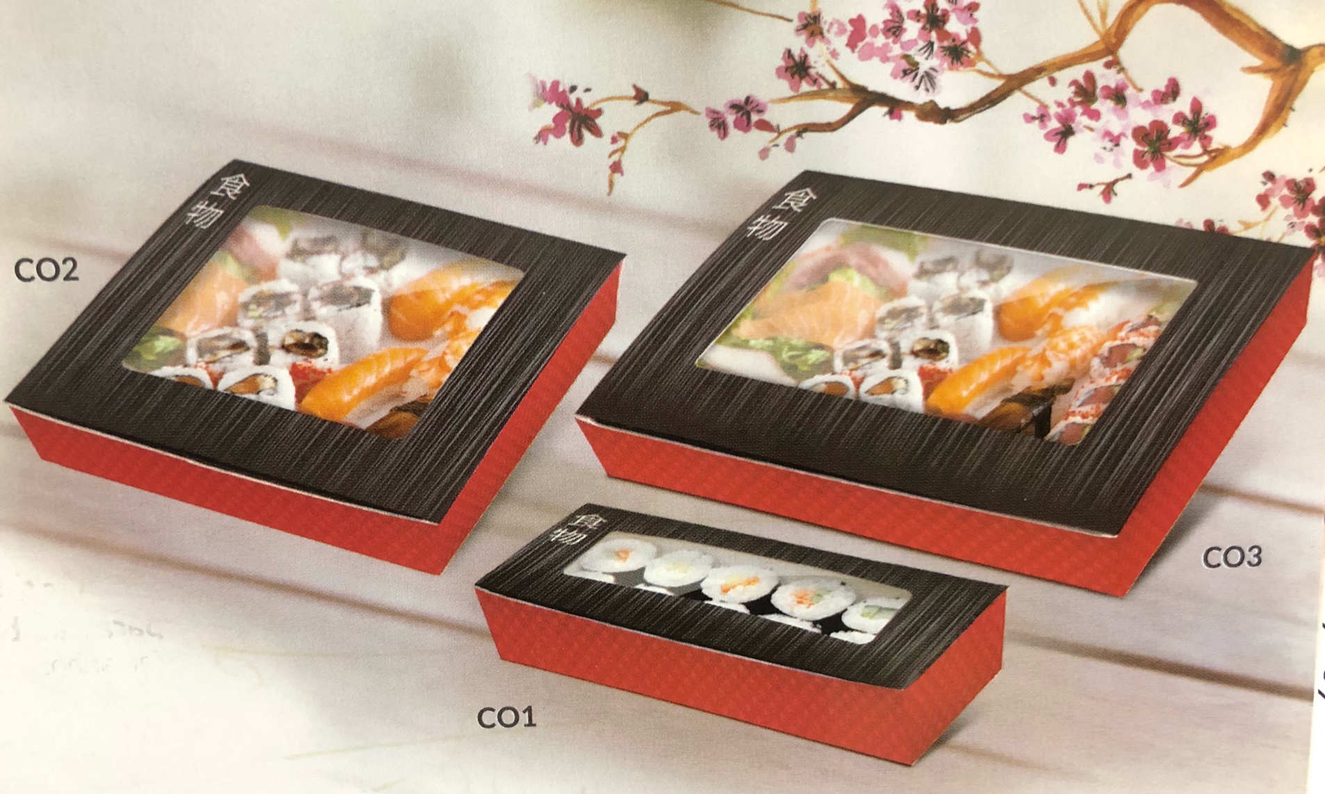 Embalagens para Sushi, Sashimi e Combinados. Pacote com 100 unidades.