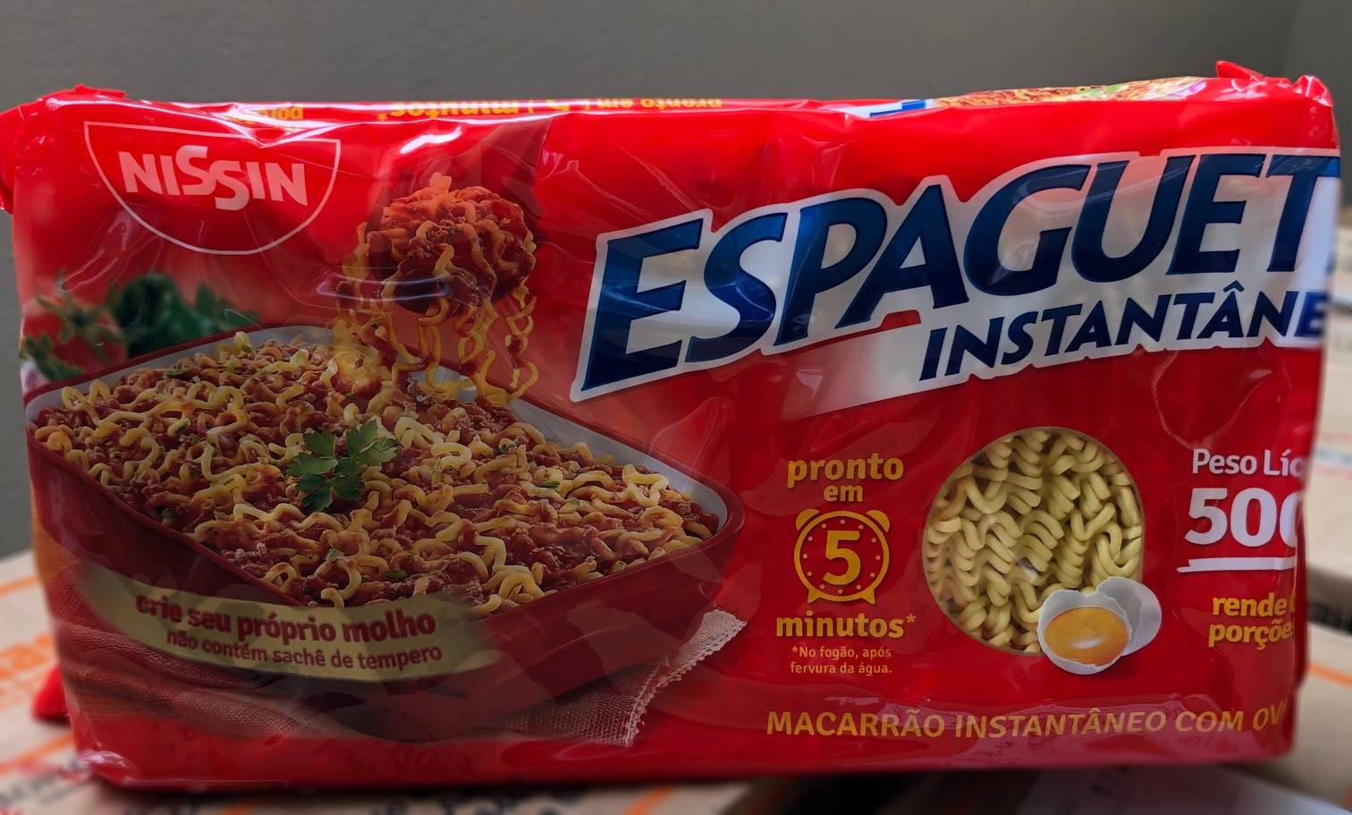 Macarrão instantâneo com ovos Nissin – 500g. Caixa 20 unidades.