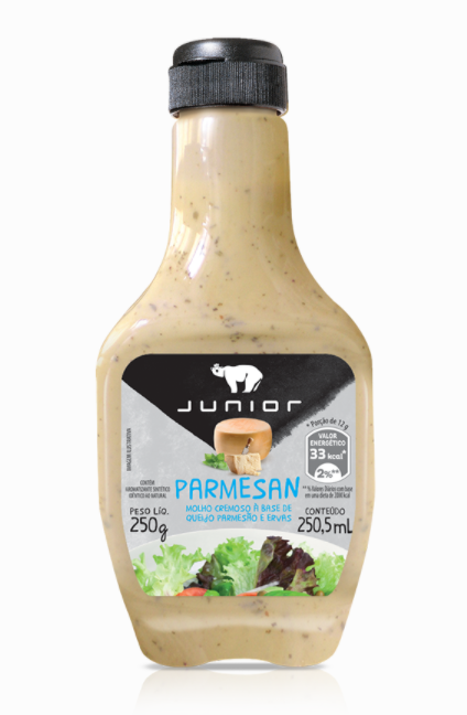 Molho cremoso à base de queijo parmesão e ervas, Junior – 250g. Caixa com 12 unidades.